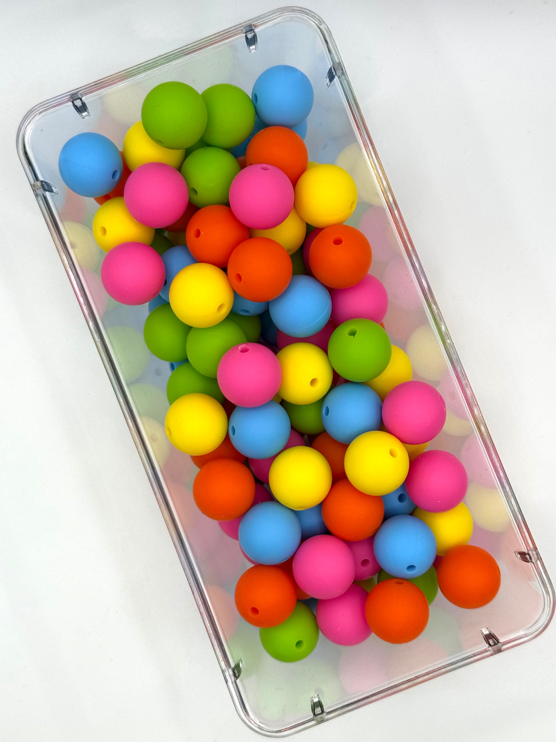Our 15mm Silicone Bead Mixture is a hand-picked party of bold brights, flirty pinks, soft blush tones, and rich pops of color ready to turn your next project into a total showstopper. Each pack includes 100 round 15mm silicone beads in a gorgeous assorted mix that’s perfect for wristlets, keychains, pens, lanyards, zipper pulls, and all your bead-loving creations.