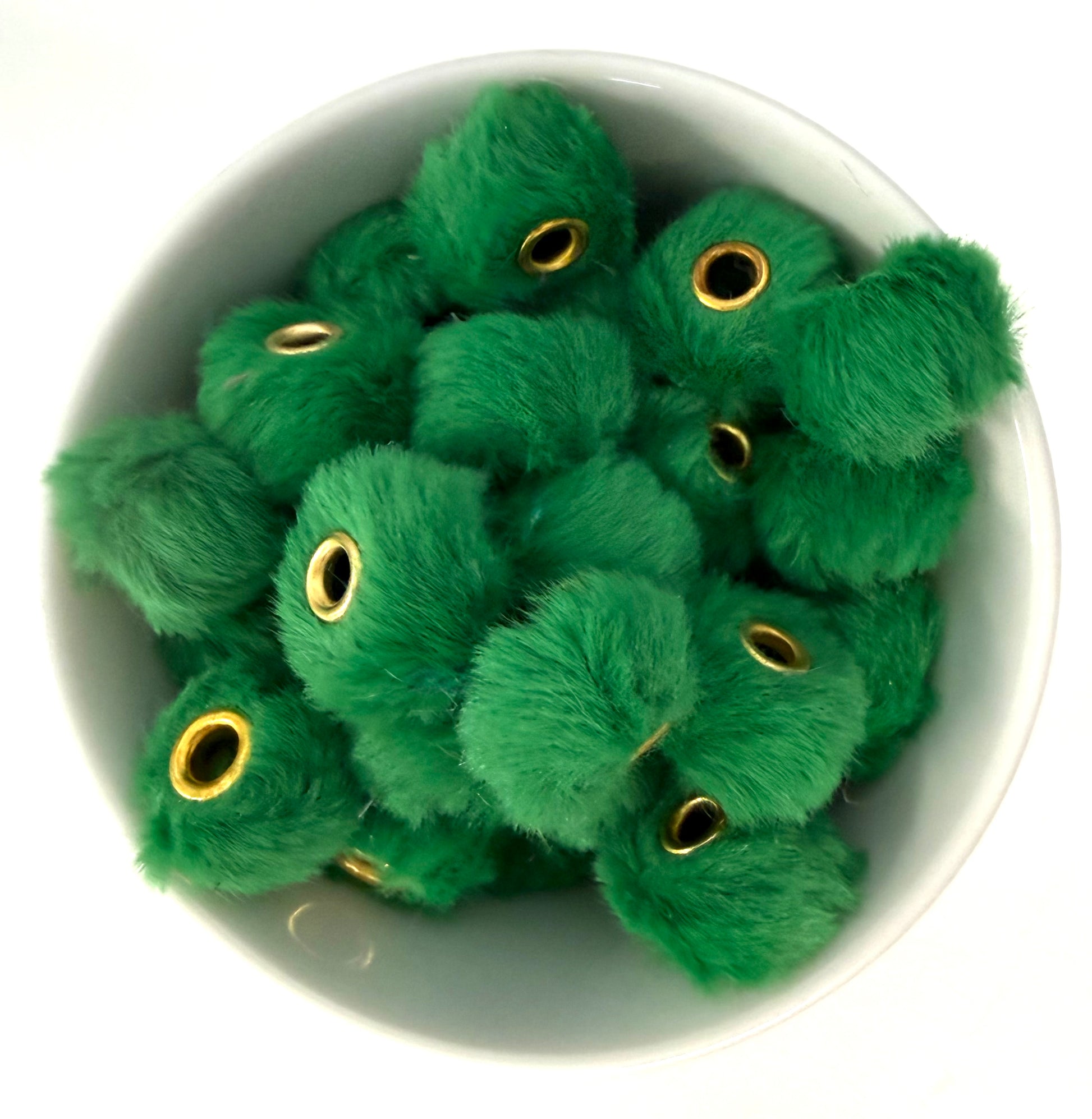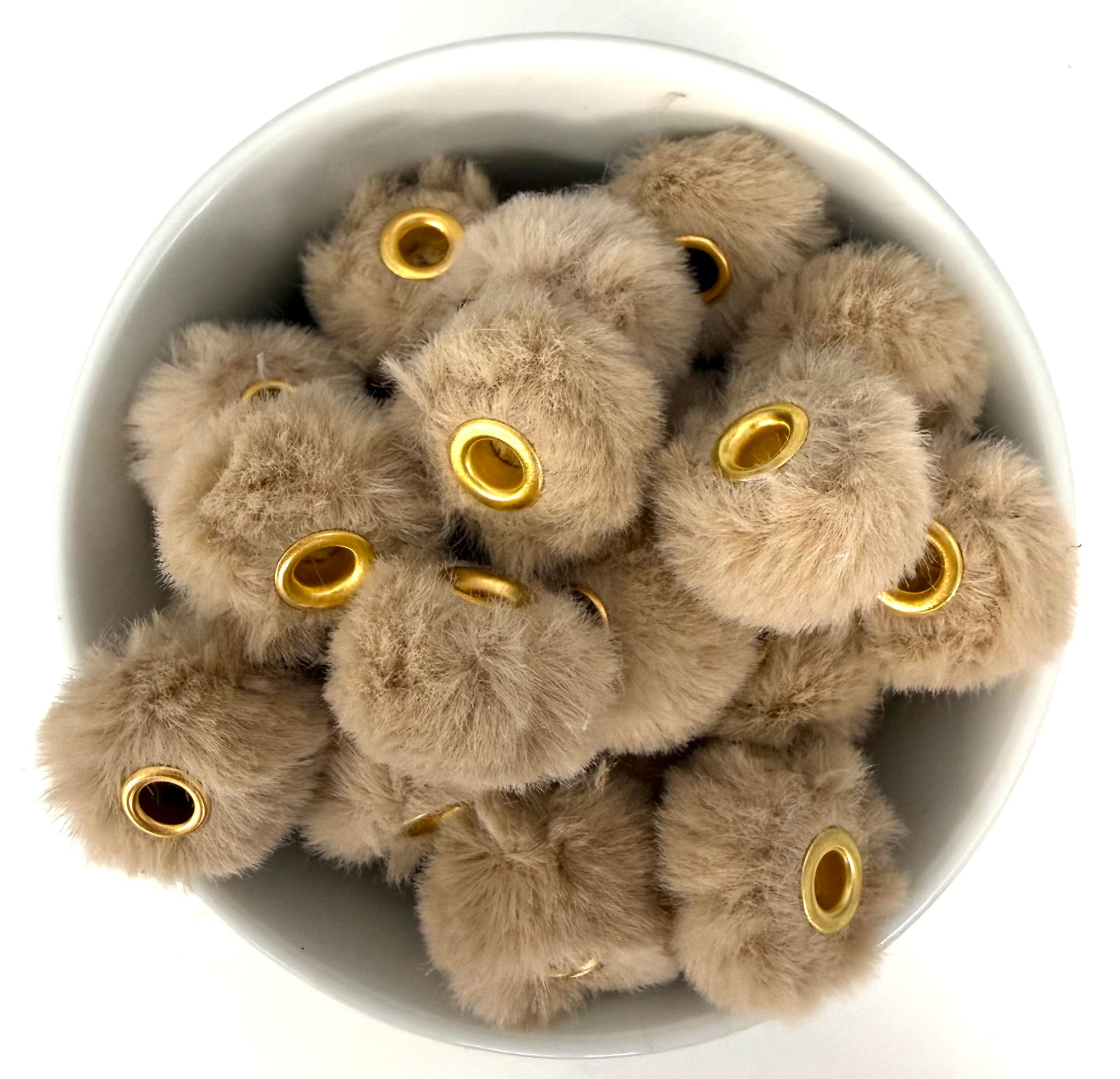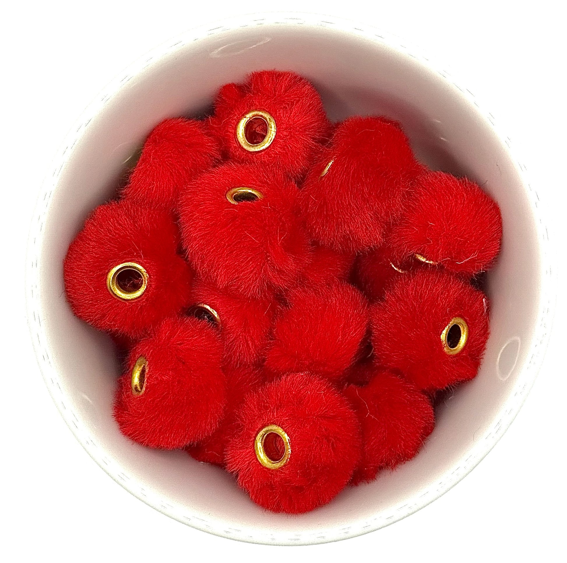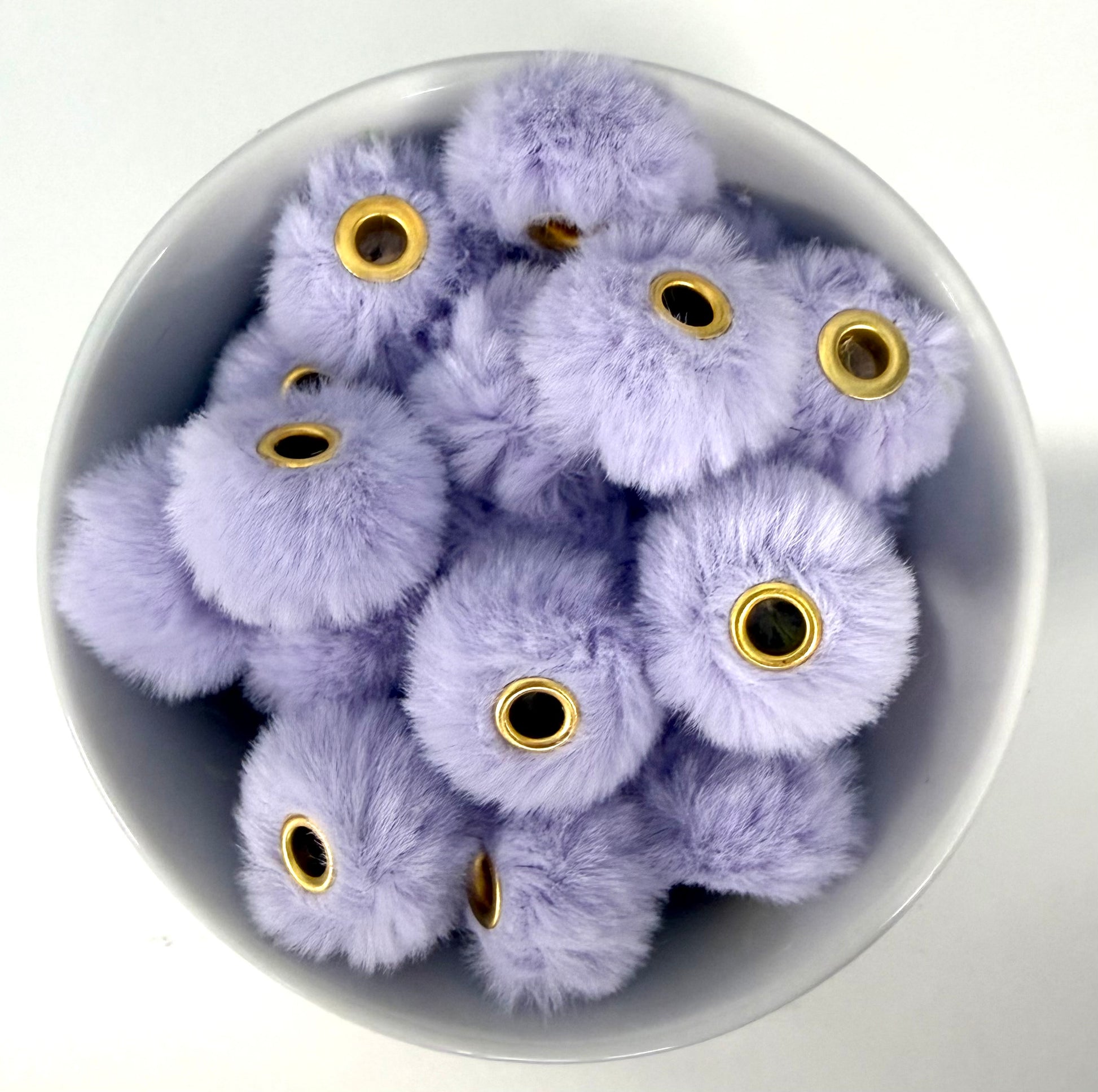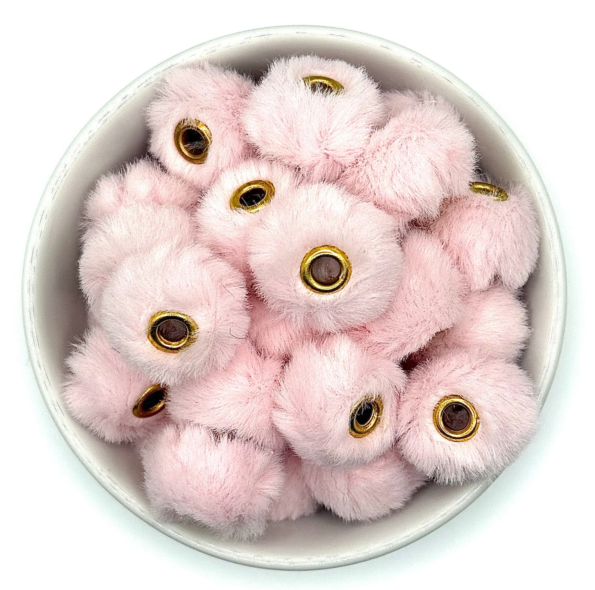 Covered in ultra-soft faux fur and finished with a gold-tone eyelet center, these beads bring texture, dimension, and a pop of playful colour to wristlets, keychains, lanyards, bag charms, and more.