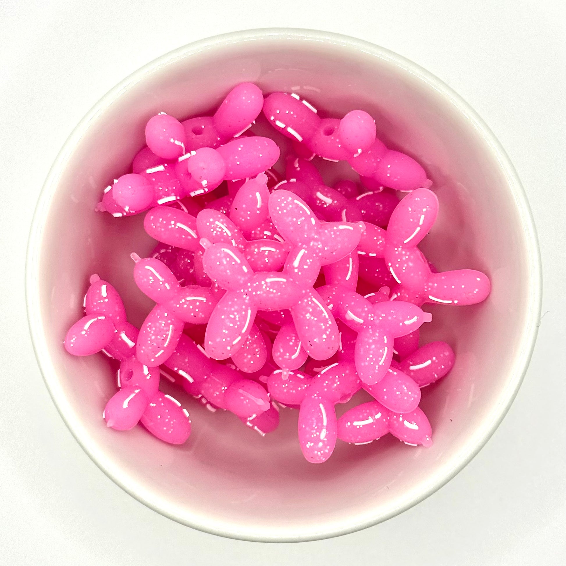 Add a playful pop of color to your creations with these adorable balloon dog silicone focal beads! Available in bright pastel shades of pink, blue, and green that glow in the dark! Each bead features a glossy finish with subtle glitter for the perfect touch of sparkle. Their cute balloon-animal shape makes them a standout addition to any craft project.