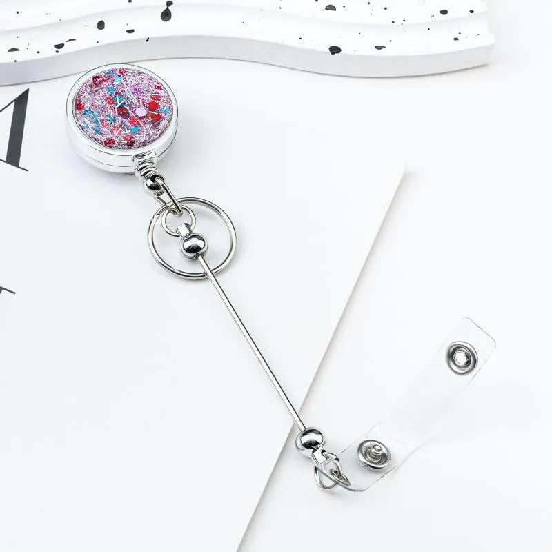 Glitter Sequins Plastic Beadable Badge Reel Retractable Clips | Beadables