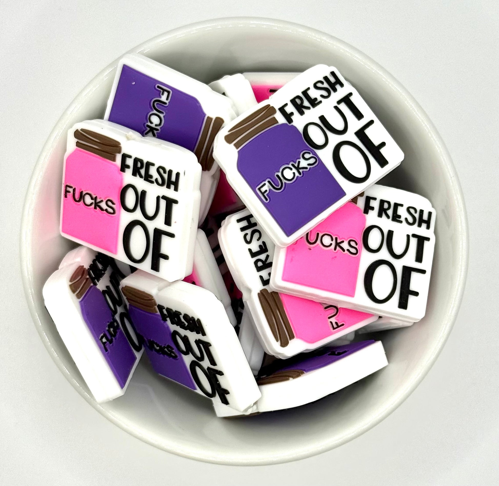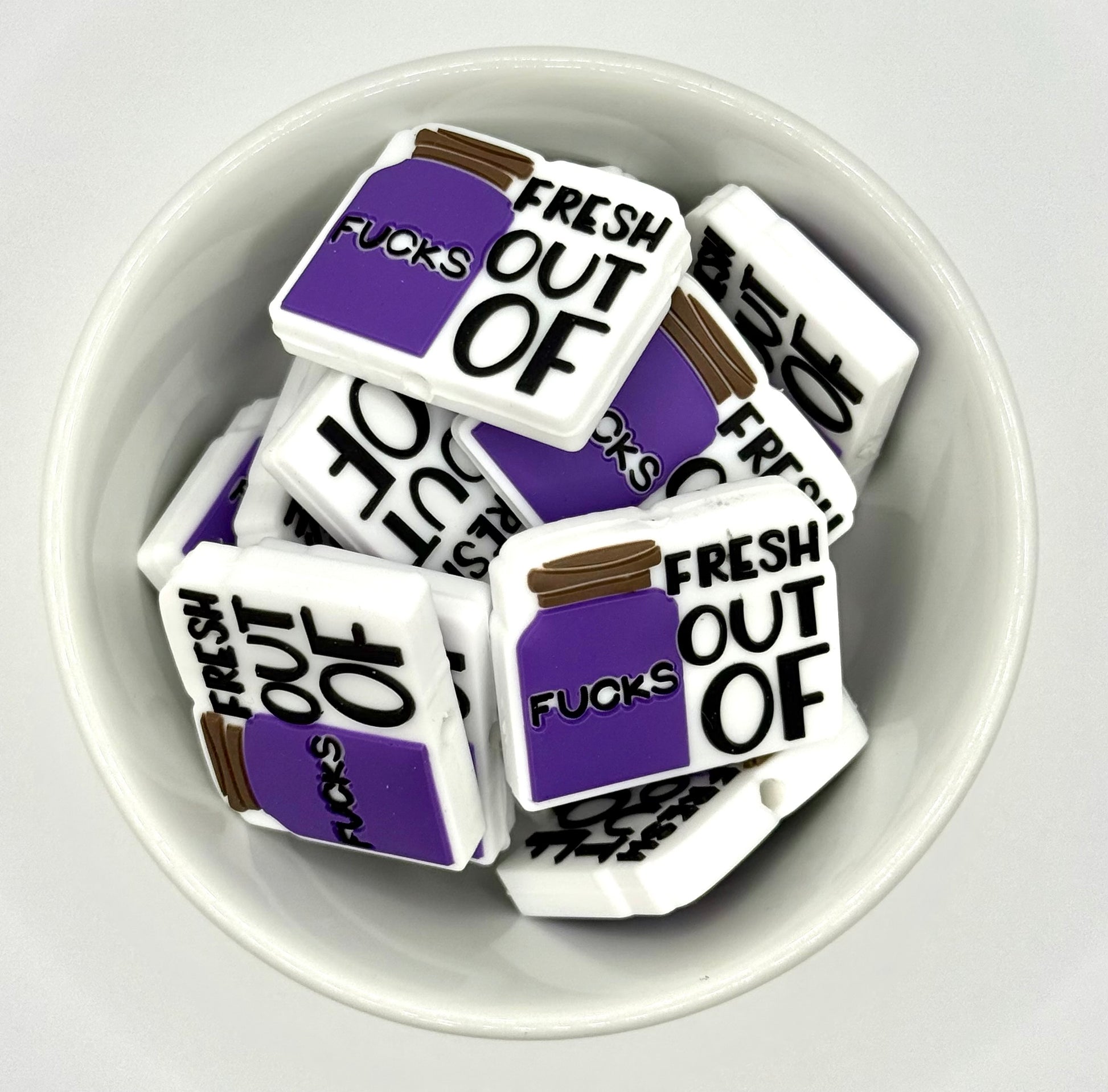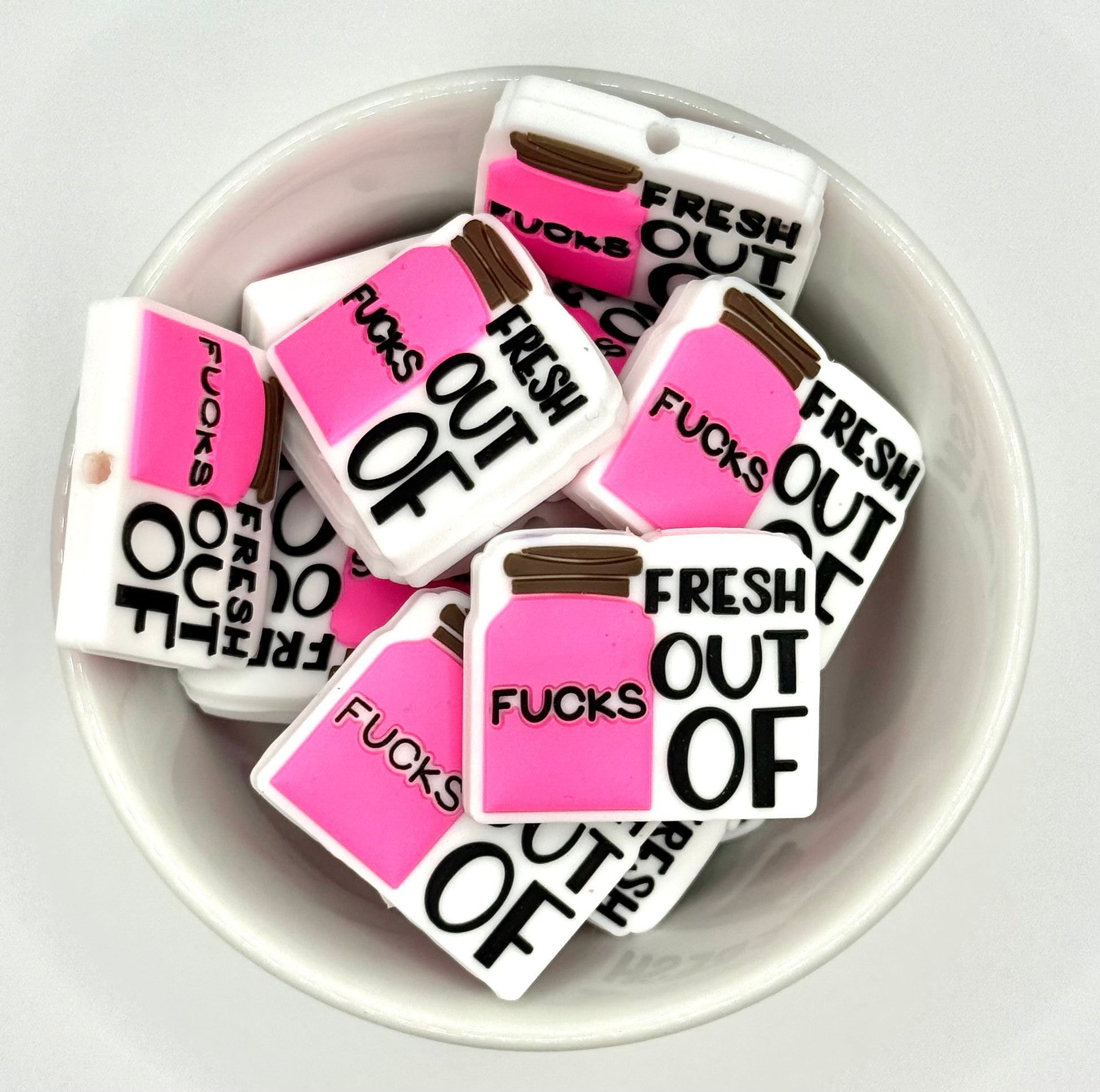 Our fresh out of f**** silicone focal bead is perfect for keychains, wristlets, badge reels or any creation that needs a little extra attitude.