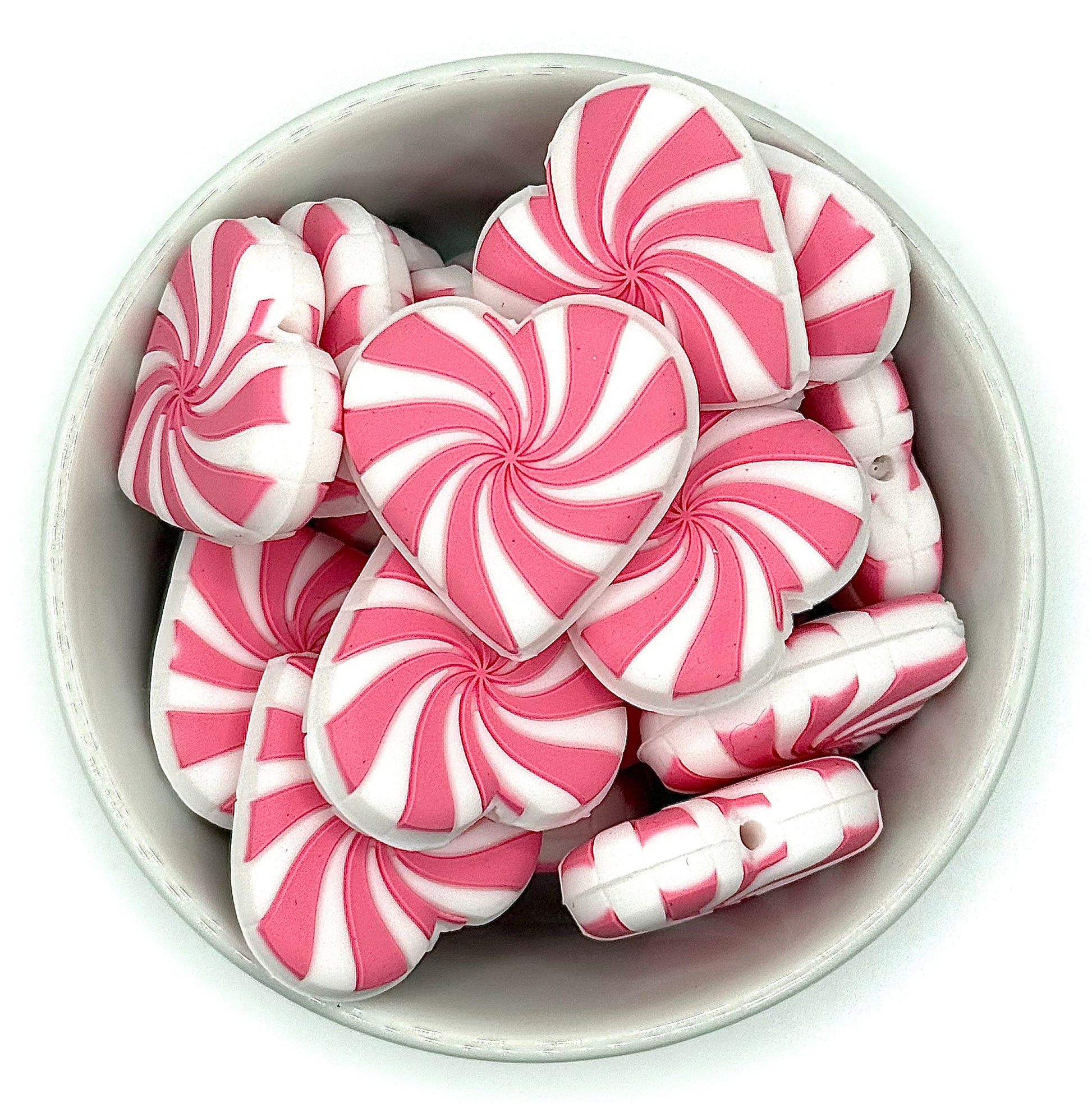 Add a fun and festive touch to your handmade designs with these peppermint swirl heart silicone focal beads. Featuring a playful spiral design in classic red and white or sweet pink and white, these beads bring a cheerful candy-inspired look to Valentine’s Day, holiday, and year-round love-themed projects.